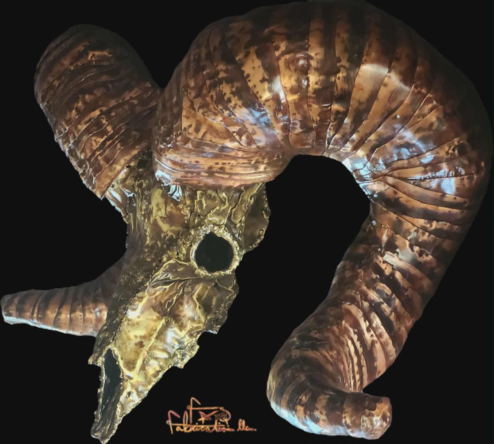 Life-size Ram Skull made from bronze, brass, iron and copper