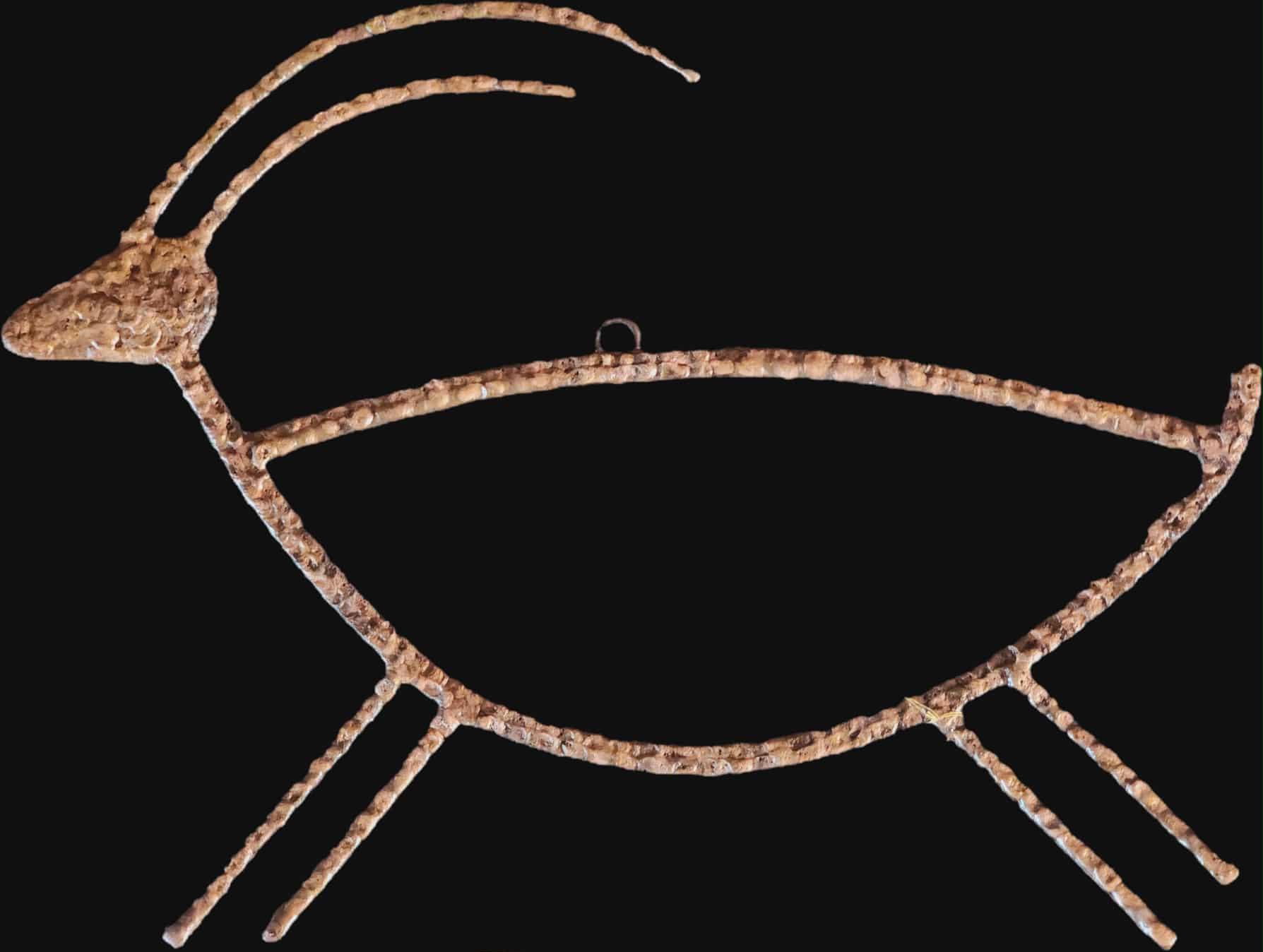 Frank Andrews Classic Running Ram copper petroglyph sculpture taken from Canyon de Chelly, AZ.